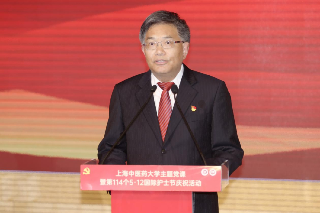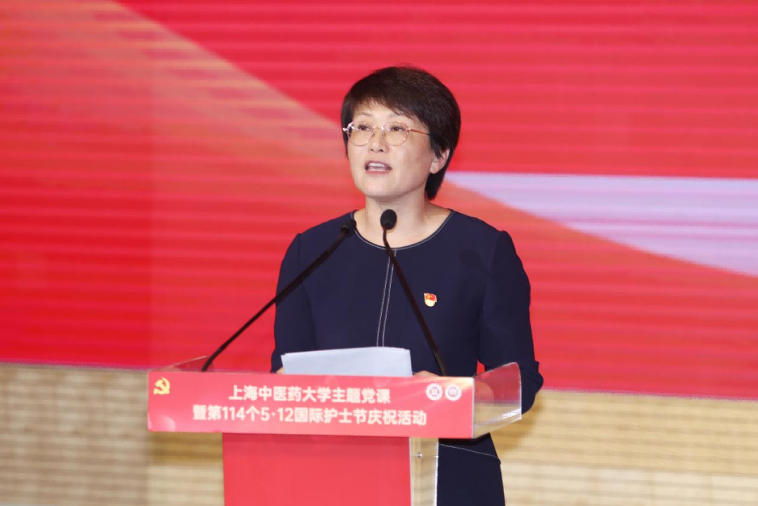 5月14日下午,上海市教卫工作党委第六季“伟大工程”系列示范党课之上海中医药大学“大美无言 大爱有声”主题党课暨第114个国际护士节庆祝大会举行。主题党课聚焦大力弘扬和践行新时代医疗卫生职业精神,采用情景剧、主题演讲、微视频、朗诵等多种形式,全景式呈现了上中医护理人传承红色基因、践行医者使命的动人篇章,结合国际护士节庆祝活动,激励学校系统护理人员勇于担当,创新发展,为健康中国贡献更多的智慧和力量。